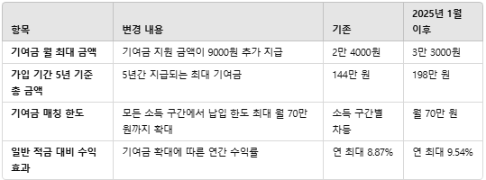- 2025년부터: 기여금이 월 9000원 증가하며 연간 수익률이 최대 9.54%로 상승